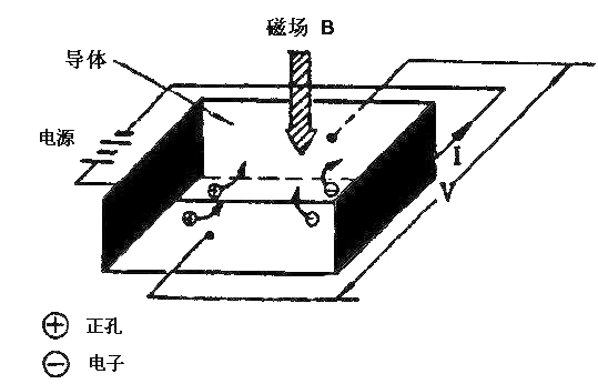 所谓霍尔效应,是指磁场作用于载流金属导体、半导体中的载流子时,产生横向电位差的物理现象。金属的霍尔效应是1879年被美国物理学家霍尔发现的。当电流通过金属箔片时,若在垂直于电流的方向施加磁场,则金属箔片两侧面会出现横向电位差。半导体中的霍尔效应比金属箔片中更为明显,而铁磁金属在居里温度以下将呈极强的霍尔效应。